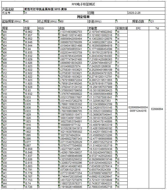 | JT-K4025 | 40*25*1 mm | Impinj Monza R6-P | 32-bit bruker, 48-bit TID, 128-bit EPC | |